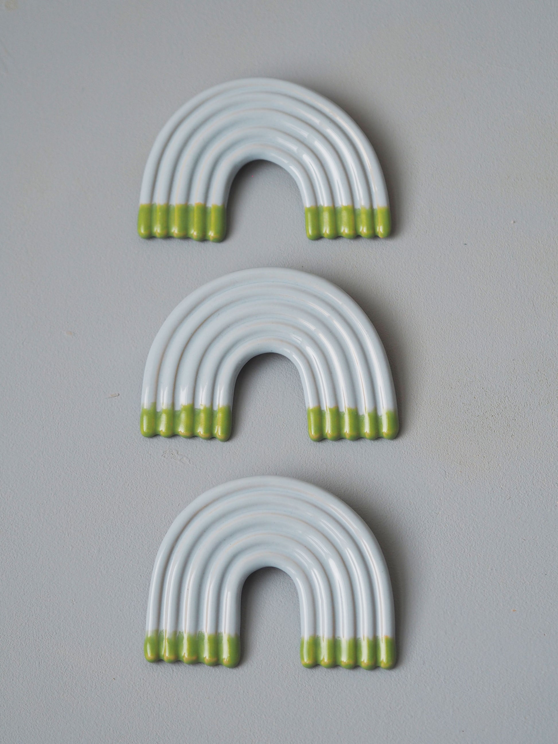 Halusin luoda pienen keraamisen teoksen, jonka voit ripustaa seinälle muiden taideteostesi kanssa. Sateenkaaret on valmistettu käsin ilman muottia, joten jokainen niistä on ainutlaatuinen. Rakastan niiden tekemistä, koska niillä kaikilla on oma luonteensa,