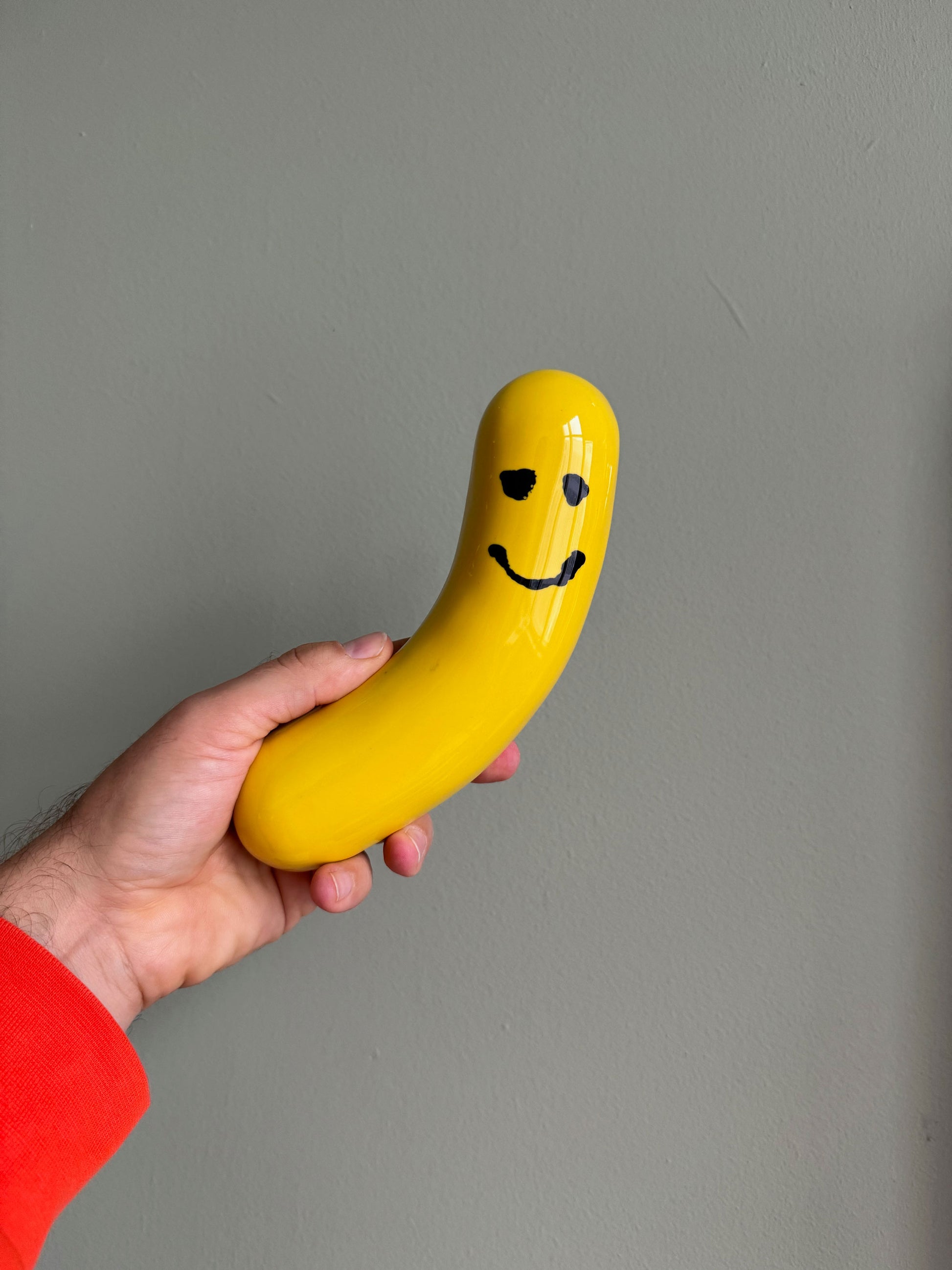 The Wall Sausage series stared in 2021 from my Ceramic Deli exhibition. People was naming my pink vases as nakkivaasi (wiener vase) and I got inspired from this and decided to go all the way with the sausage theme. The Wall sausage was born. I really like that I can modify this very universal form in many different ways -it can be sausage with mustard, a pickle or even an yellow one with a smiley face.